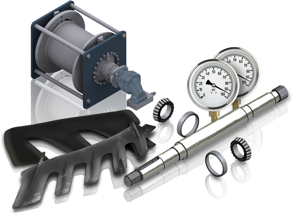 Complete assembled set of DSC model WN200 winches including; two (2) spud winches, Two (2) swing winches and one (1) ladder winch.