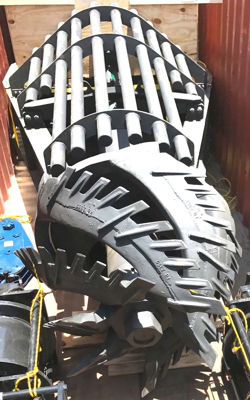 Ladder end structure complete with cutter head and cutter drive assembled on the ladder structure.