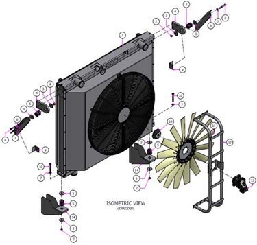 The radiator acts as a heat exchanger for the engine. It is usually made of aluminum and has many small diameter pipes with fins attached to them. Furthermore, it exchanges the heat of the hot water coming from the engine with the ambient air. It also has a drainage plug, an inlet port, a sealed cover, and an outlet port.