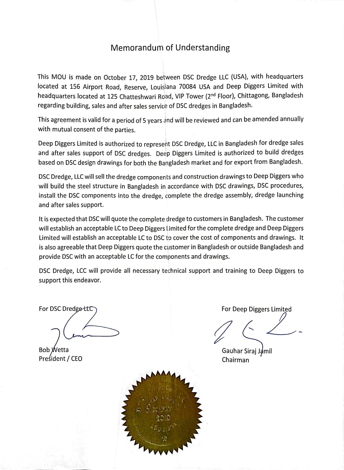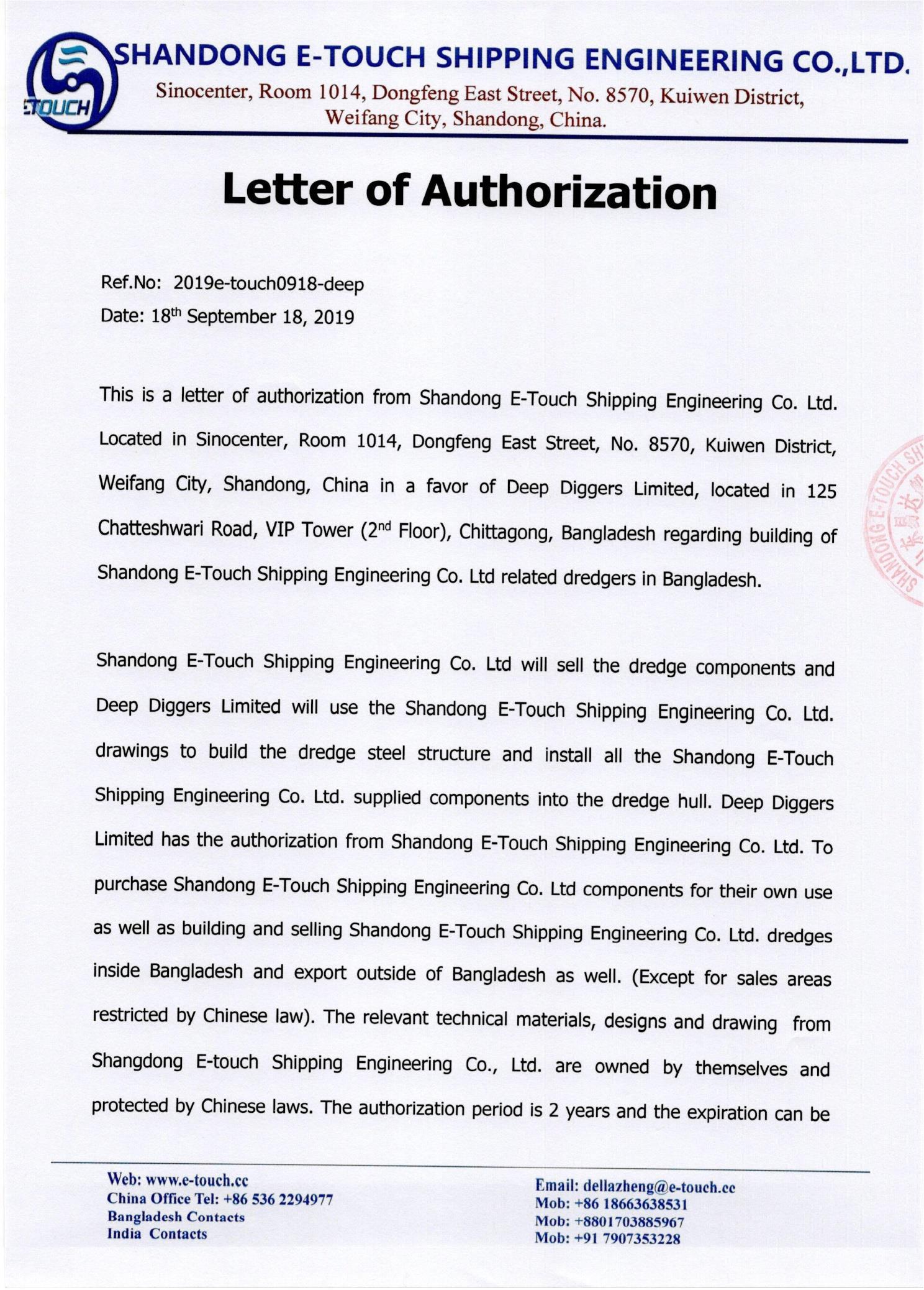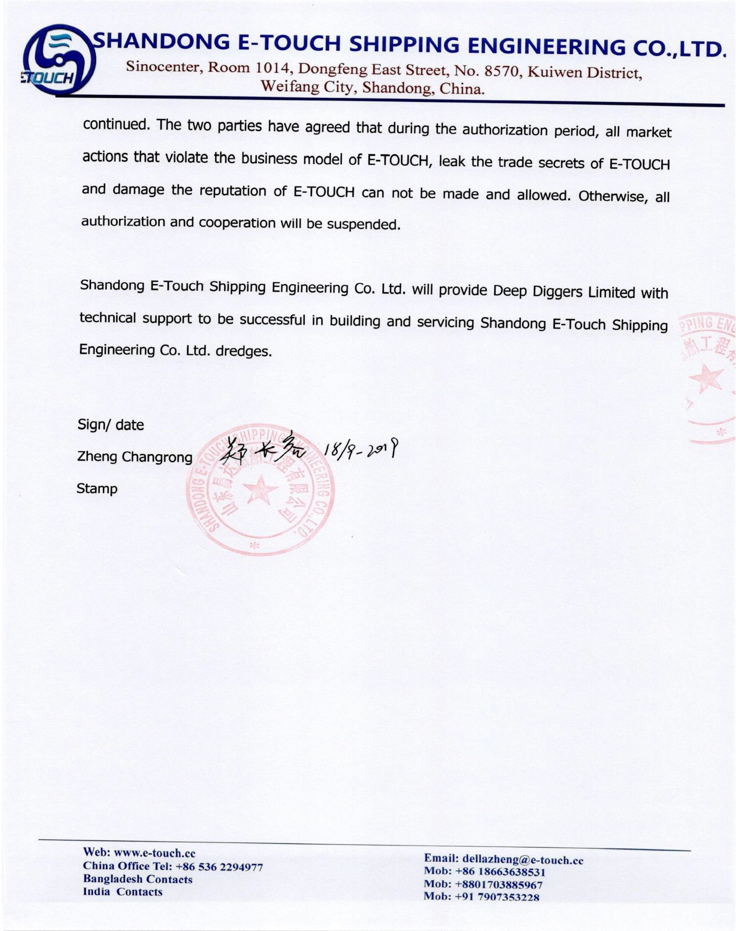 DEEP DIGGERS LIMITED is a venture concentrated in the dredger manufacturing industry. The construction facility of the dredger will be commissioned in 2019 by prudential planning of Omar Sharif, founder Managing Director of DEEP DIGGERS LIMITED with active support of the Directors. The Chairman of the concern is also a shrewd businessman who wants to capitalize the business opportunity of the dredger manufacturing to mitigate the demand of the dredger in the national level and pioneer in the industry by manufacturing and exporting the dredger in collaboration with DSC DREDGE LLC, an American company providing customized dredging solutions worldwide We are also authorized by SHANDONG E-TOUCH SHIPPING ENGINEERING CO. LTD..