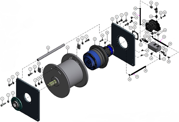 The hydraulic package consists of all hydraulic pumps, motors, relief valves, control valves, compensators, pressure reducing valves, filtration, etc. The basic hydraulic package consists of all items required for the hydraulic circuit. DSC will supply the hydraulic hoses as hose assemblies with the fitting crimped onto the hoses. DSC will supply the hydraulic pipe and the fittings (loose). The dredge builder is responsible for cutting the hydraulic pipe to length and installing the fittings on the hydraulic piping. The dredge builder will be responsible for installation of the hydraulic hoses, fabrication of the hydraulic tank and assembly/installation of the hydraulic components. The dredge builder will be responsible for supplying the system hydraulic oil.